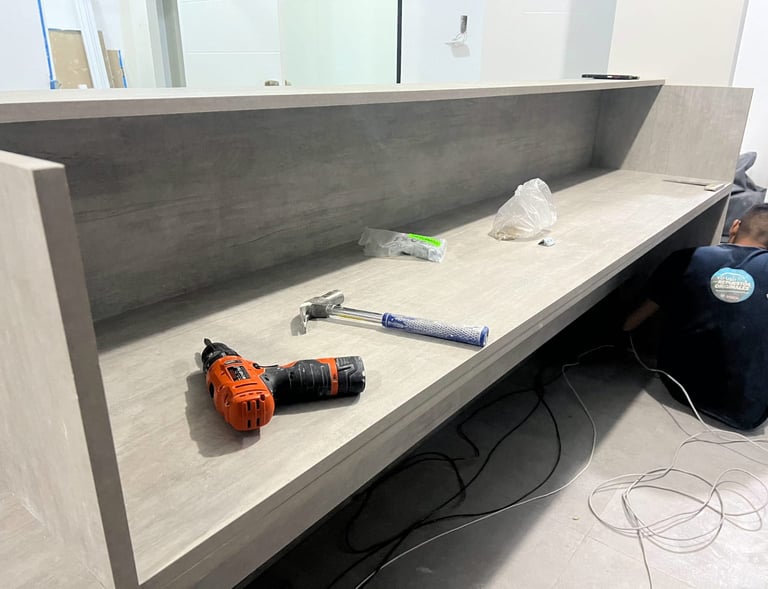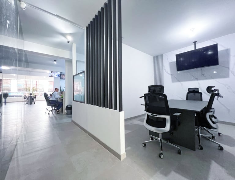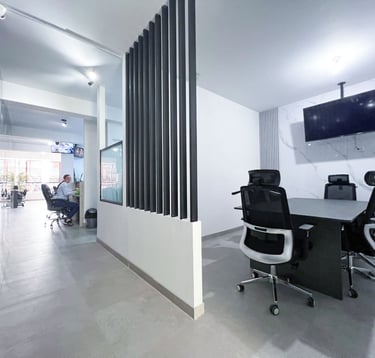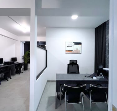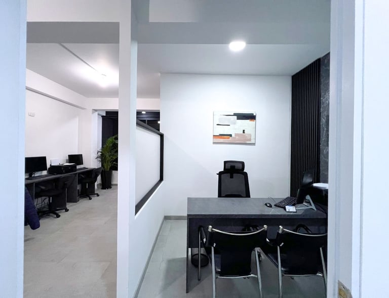 Proyecto de acondicionamiento interior para oficina administrativa, organizado mediante una distribución clara de puestos de trabajo, áreas de atención y zonas de apoyo. La propuesta incorpora divisiones ligeras, mobiliario funcional y elementos vegetales puntuales, priorizando la iluminación, la correcta circulación y un ambiente de trabajo ordenado y eficiente.